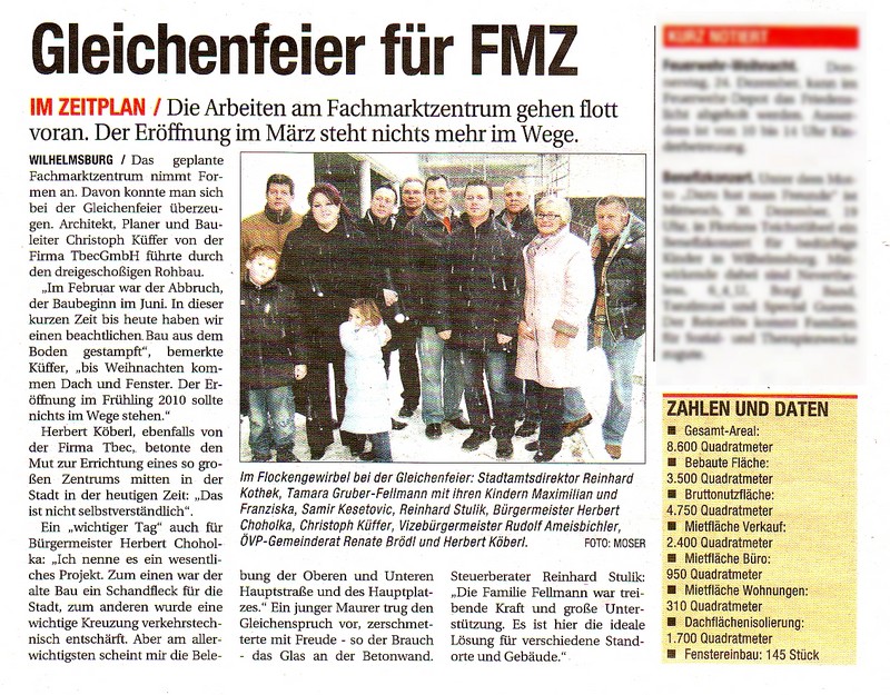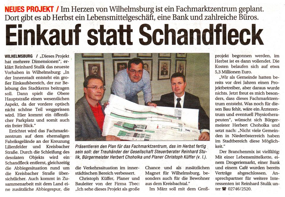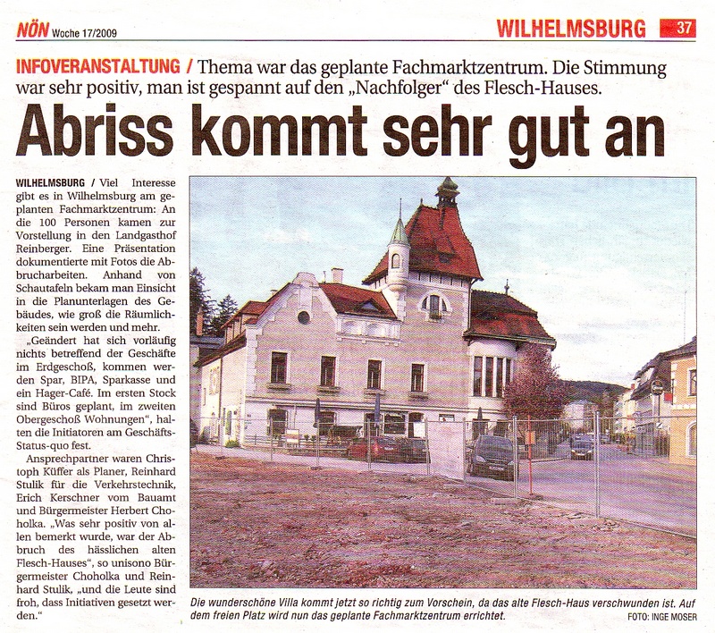 Kurier vom 19.01.2009 NÖ Nachrichten vom 20.04.2009 NÖ Nachrichten vom 22.12.2009