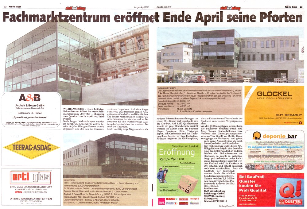 Hier finden Sie alle Presseberichte zum Fachmarktzentrum CityBox.